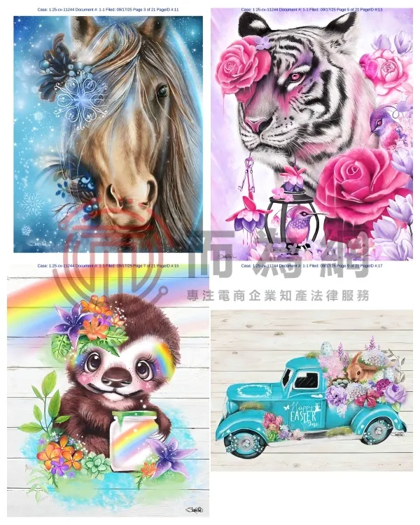 本案涉及的版权信息如下,共10张图片,未经授权以下图片及原告官网的其他作品都不能擅自使用,请卖家们仔细排查,避免侵权!