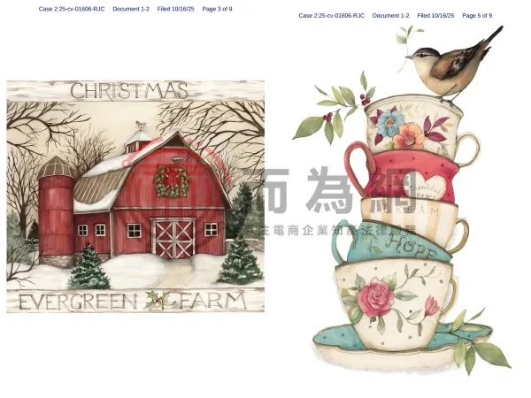 25-cv-1606 Susan Winget 4张版权发案维权!这些圣诞树、农场、红卡车元素通通不能用!
