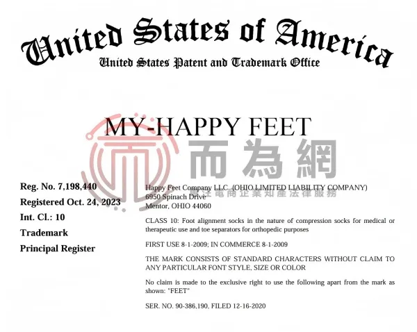 原告Happy Feet Company LLC是一家总部位于俄亥俄州的企业,旗下MY-HAPPY FEET 脚趾矫正袜是该公司的主推产品。这款脚趾矫正袜是由俄亥俄州嘉德兰的Eva Nemcik于 2007年创造,起初是为了缓解她因运动引起的足部疼痛。