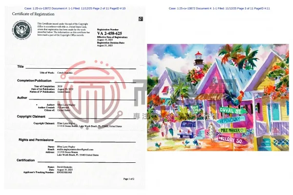 25-cv-13872 Ellen Lynn Negley热带水彩画发案维权!这5张色彩鲜艳的版权通通不能用!