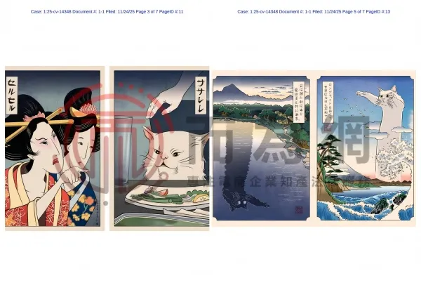 25-cv-14348 爆款表情包+浮世绘风格插画维权中!跨境卖家们速看避雷!