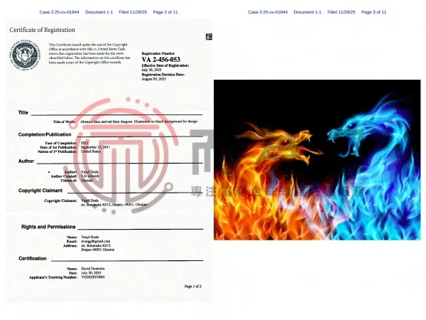25-cv-01844 Ference律所代理5张霓虹、龙等元素版权发案!速看避雷!