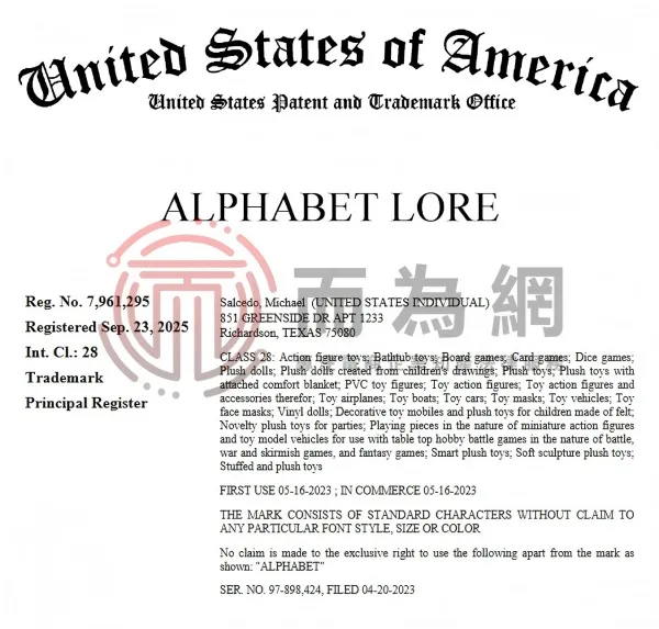 25-cv-1920 AGDG律所代理Alphabet Lore 字母传说商标+版权在德州发案!相关周边产品立刻下架