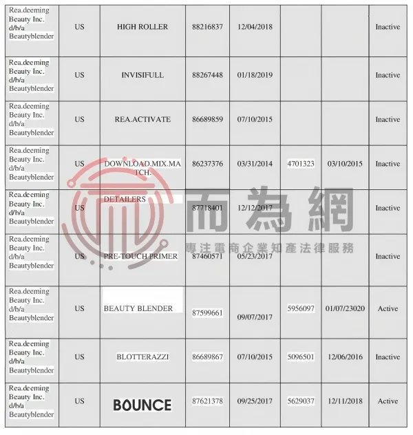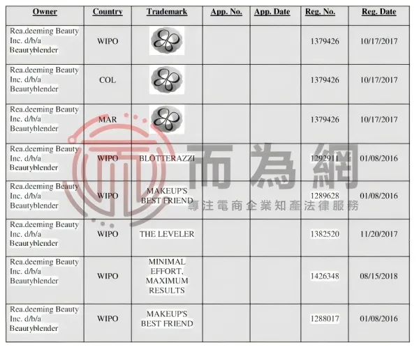 原告Rea.Deeming Beauty, Inc.是一家化妆品和彩妆产品的供应商和制造商,旗下产品品类众多,包括但不限于 Beauty Blender化妆海绵、Power Pocket Puff粉扑海绵、Blender Defender化妆海绵收纳盒等。