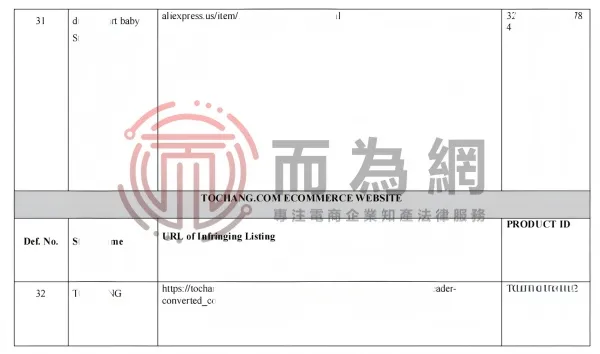 原告Qingtao Yu是一位国人卖家,名下有一项名为《Butterfly anti-drop pillow》的婴儿头部保护背包版权。本案涉及的侵权产品正是该版权,共32家店铺中招。