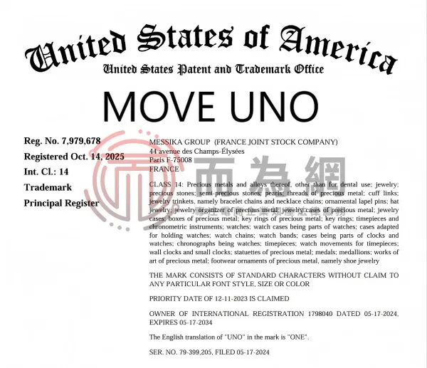 原告品牌:Move uno 珠宝