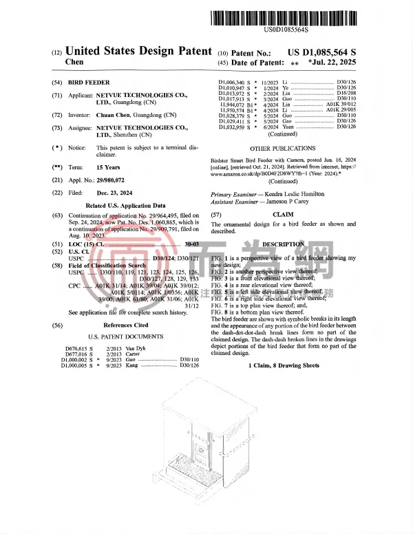25-cv-6812 速看!国人原告发起Netvue 喂鸟器三项外观专利维权!