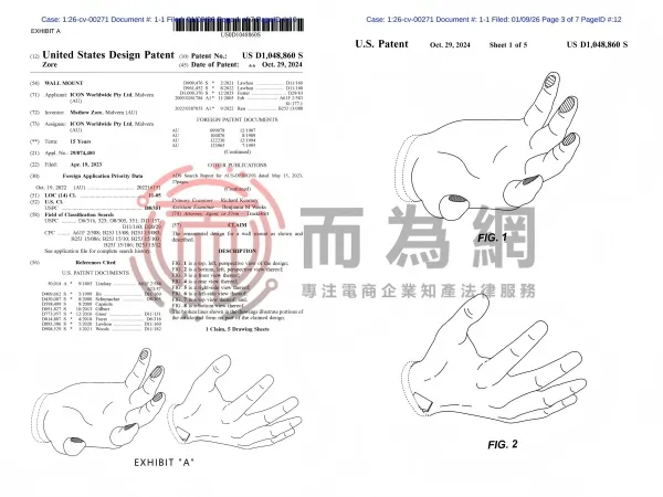 26-cv-271 家居用品类卖家注意!这款手型壁挂支架专利正在维权中!