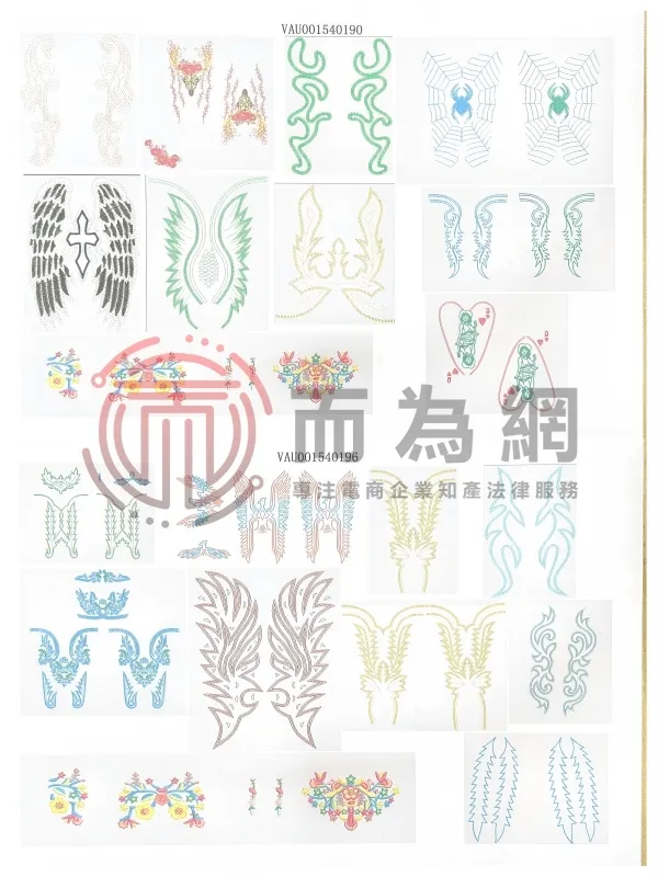 本文两案涉及的版权如下,每项注册版权均涵盖一组十件绘画或图形作品,未经授权以下图形都不能擅自使用,否则会有侵权风险!