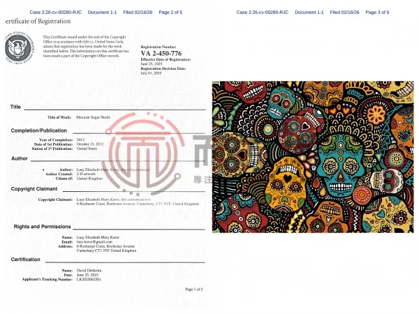 26-cv-280 速看避雷!这两张骷髅印花图发起维权,匿名起诉279家店铺!