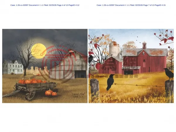 26-cv-2097 135家店铺中招!Billy Jacobs 4张乡村艺术版权画正在维权,速看避雷!