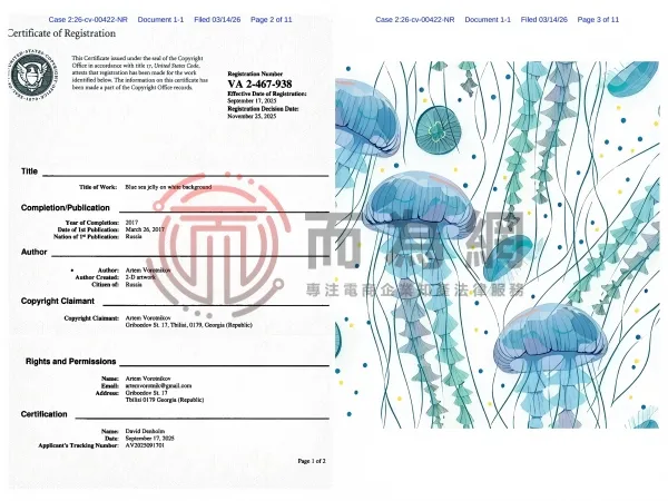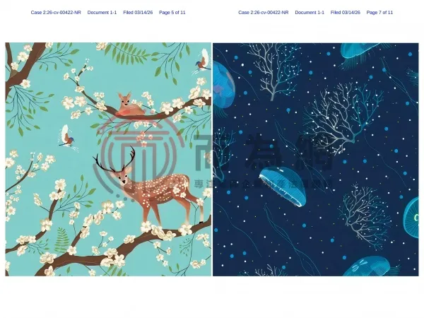 26-cv-422 Ference&Keith全新版权案!5张设计师插画正在维权,包括水母、小鹿等元素!