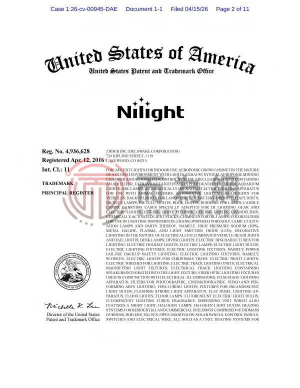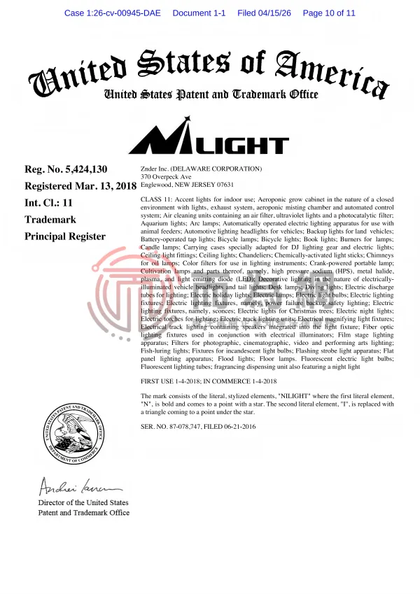 26-cv-945 汽配卖家速看避雷!亚马逊热销品牌Nilight 汽车照明灯发起商标维权!