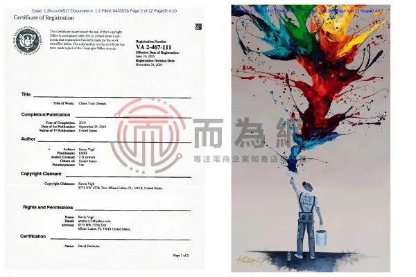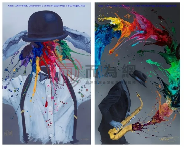 26-cv-4517 家居装饰画、海报周边类卖家速看!这7张黑白灰背景+高饱和泼墨涂鸦版权画正在维权!